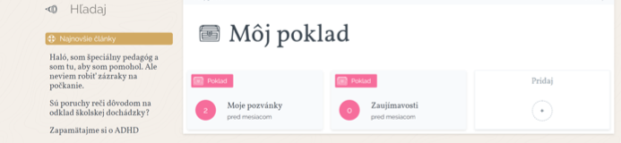Každý si občas potrebuje uložiť, odložiť či utriediť zaujímavosti, na ktoré na www stránkach natrafil. Aj na stránke Pokladu si môžete vytvoriť svoju „Pokladničku“, do ktorej môžete priebežne ukladať informácie, články, linky či zaujímavé pozvánky, ktoré chcete mať „po ruke“ alebo utriedené podľa svojich potrieb.