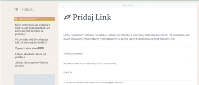 ... a pridáte link, webovú adresu, nadpis a krátky popis o čom článok je, pre koho je určený alebo čím môže byť užitočný.....
